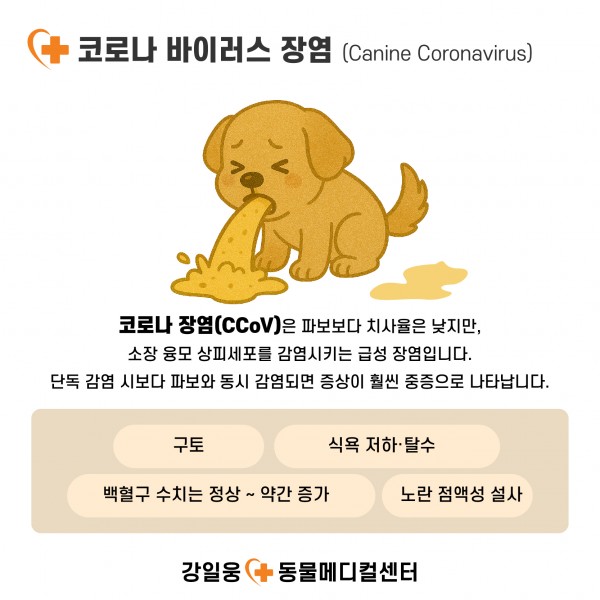 코로나 장염(CCoV)은 파보보다 치사율은 낮지만,